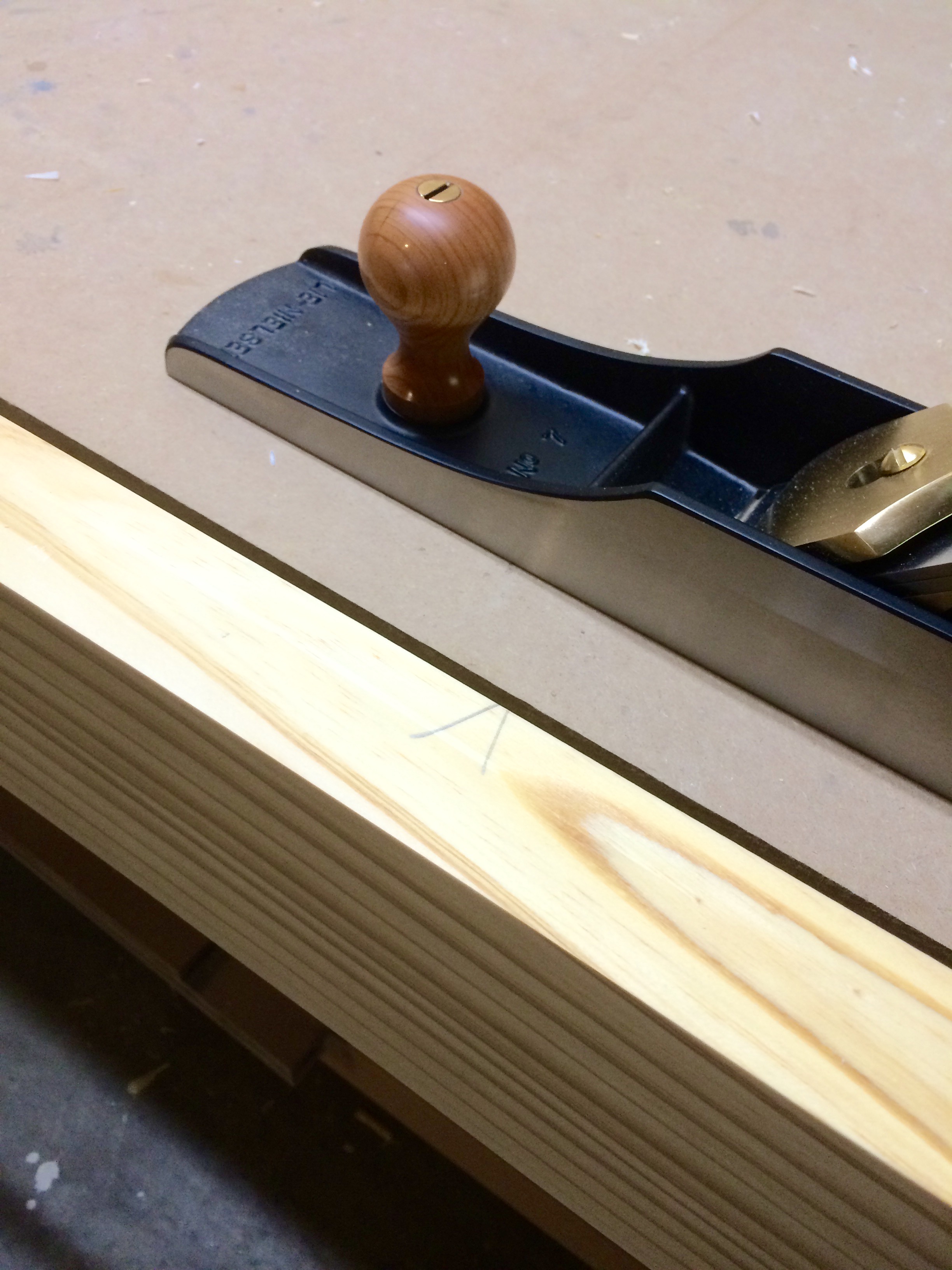 Jointing the long boards for the top ended up being a little more work than I expected. Yellow pine planes nicely, but it’s resinous nature creates a lot of friction. It also required spending a little extra time cleaning my tools free of the resin.