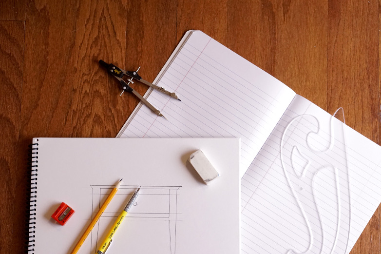 I prefer to start my designs with pencil and paper.  I freehand a rough sketch to capture the basic form.  Then, I refine the form with a straightedge and compass to produce a 3-view orthographic projection.  While I complete my designs digitally, you are free to finish them on paper.  If you prefer the analog route, there are some tools you’ll want to keep nearby.