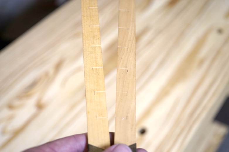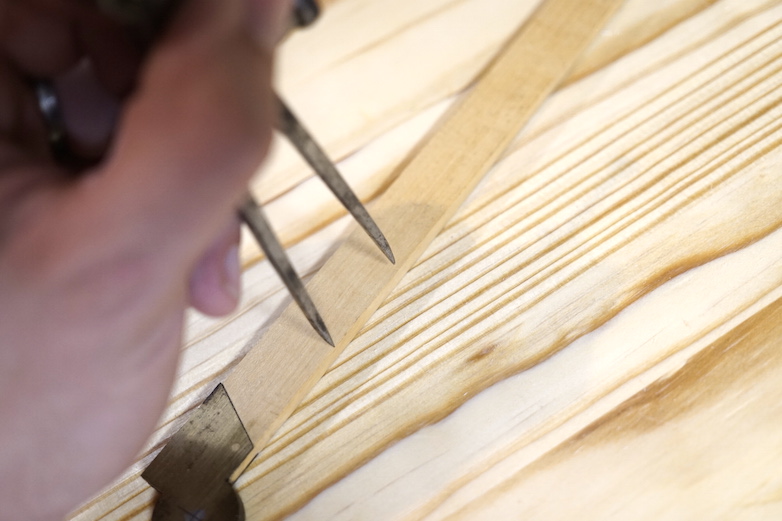 With the increments stepped off, I carefully carried a line across both arms with a marking knife.